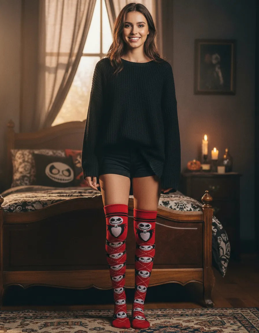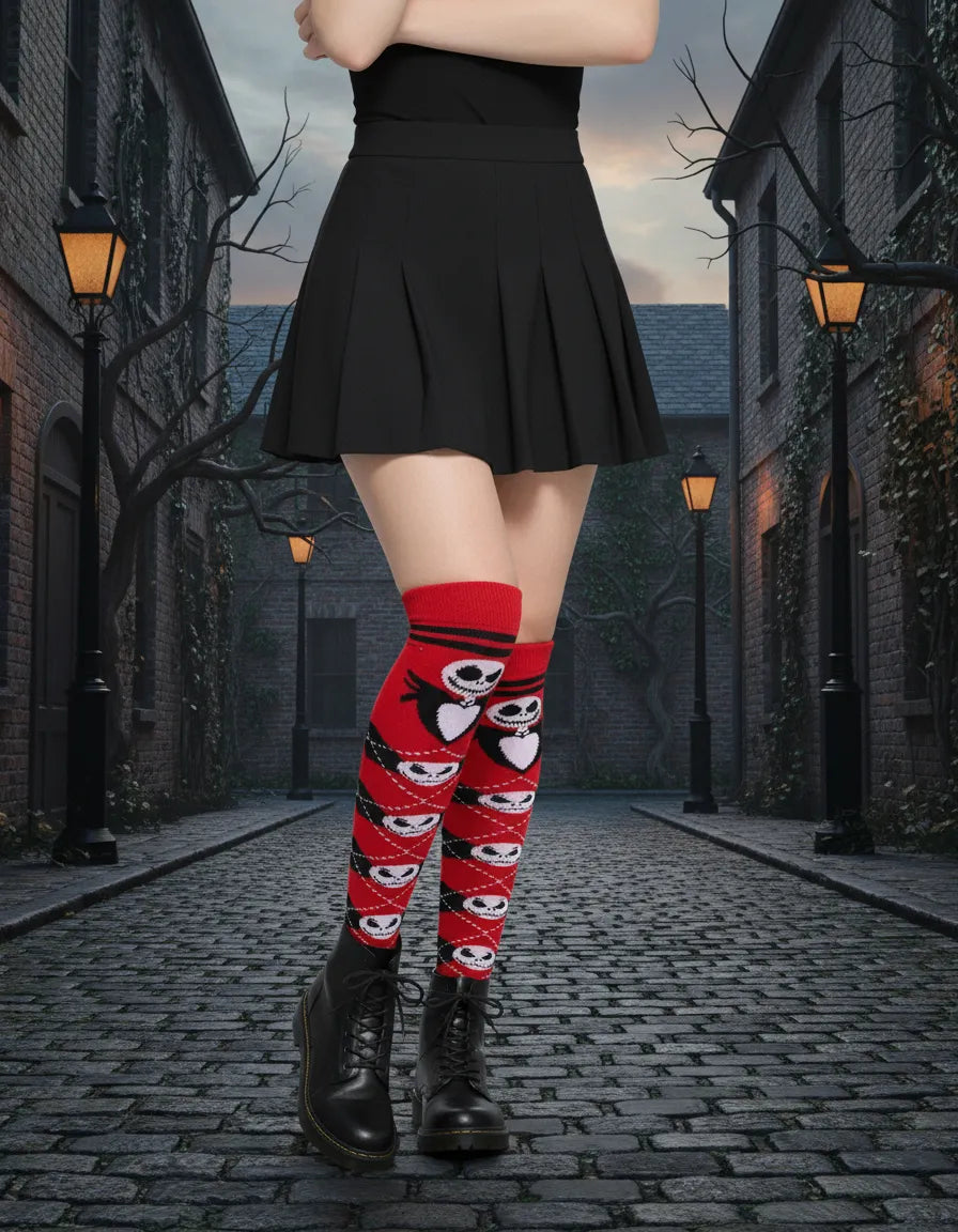 Haz que tu disfraz brille (¡o asuste!) con nuestras Calcetas Largas Halloween, ideales para mujer. Disponibles en este terroríficamente divertido diseño de Jack, estas medietas son el complemento perfecto para tu disfraz.