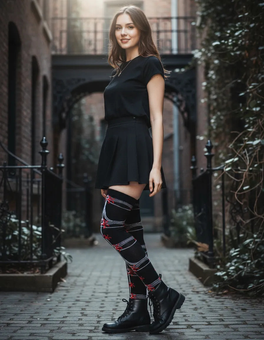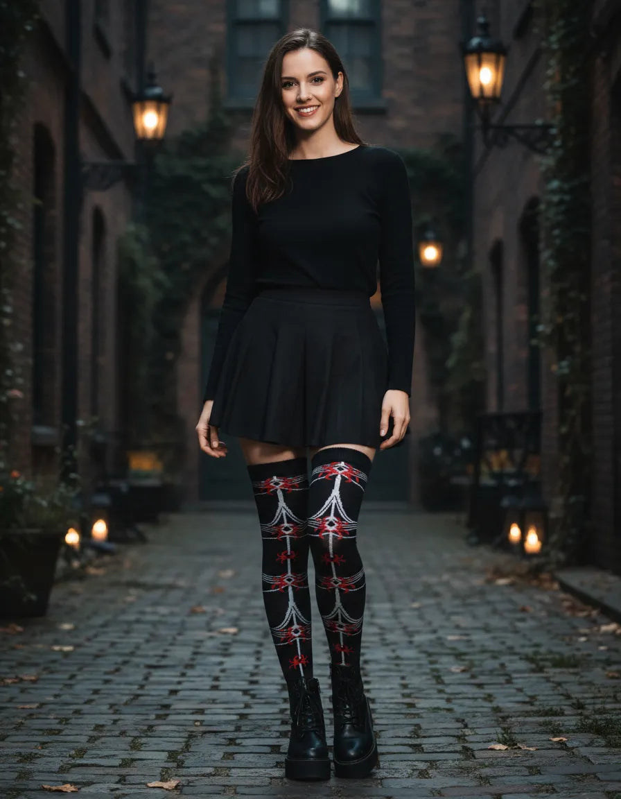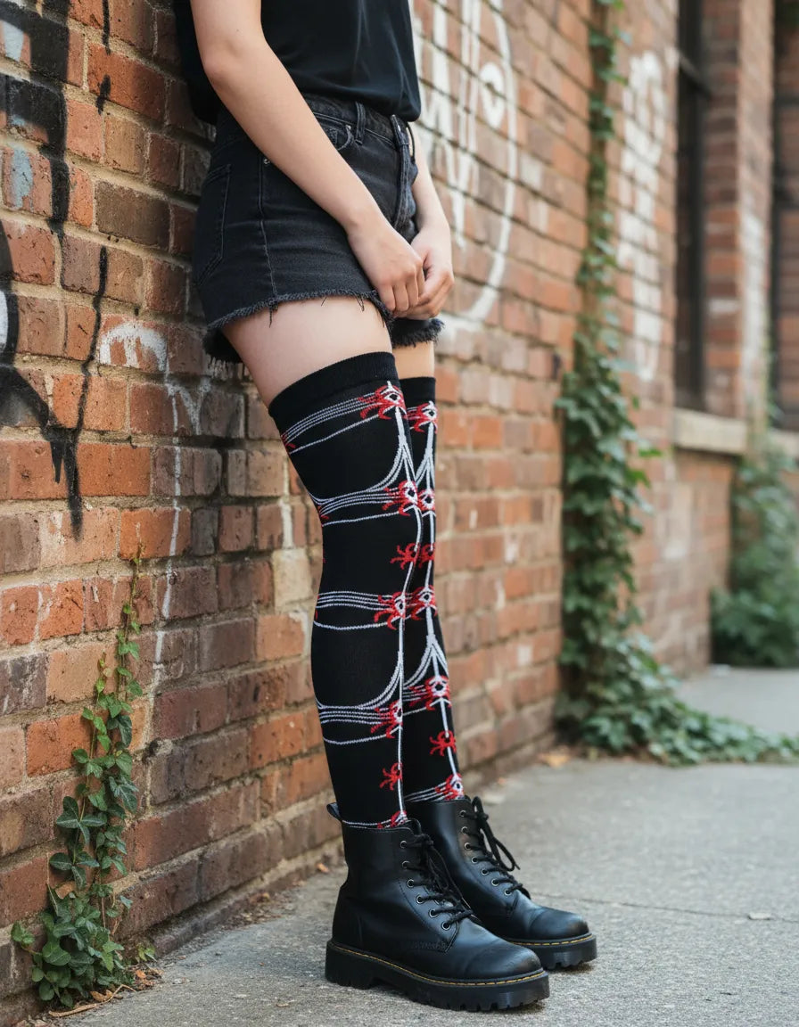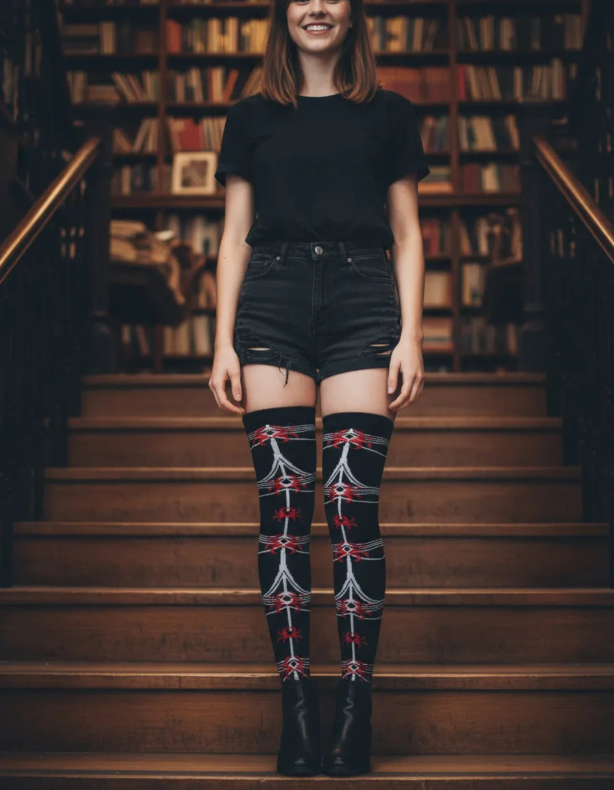Confeccionadas en acrilán, se ajustan cómodamente hasta medio muslo, adaptándose a diferentes tipos de piernas sin apretar ni causar molestias. Además, su diseño en efecto 3D resalta increíblemente una vez puestas, dándole un toque único a cualquier look de Halloween.