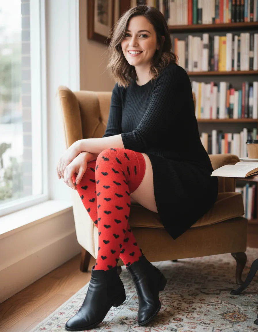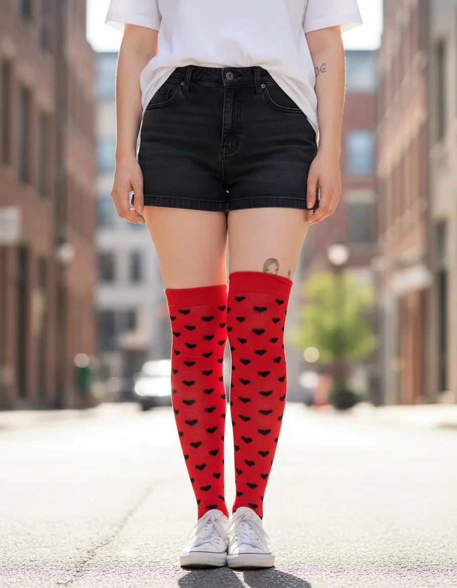 Calceta Larga Medieta Corazones Rojo Mujer