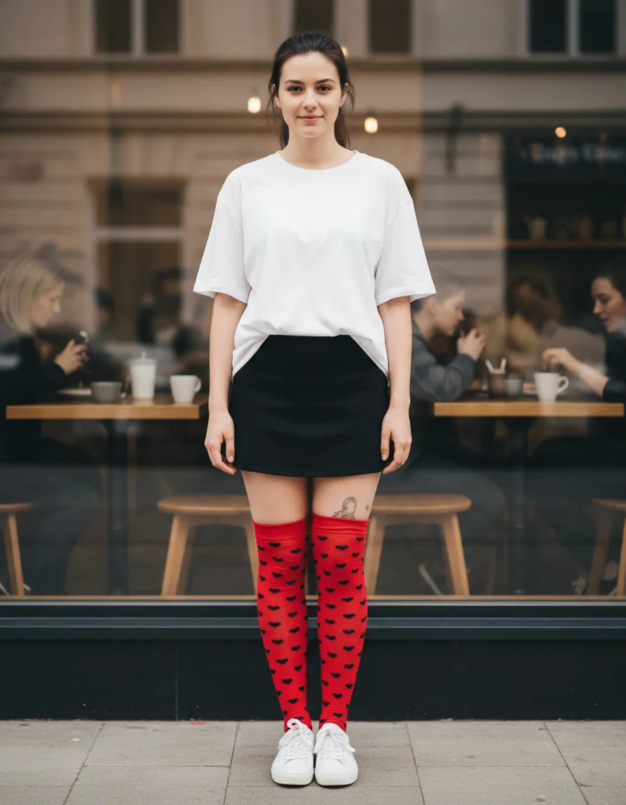 🧦💖 ¡Dale un toque único y cómodo a tu look con estas increíbles calcetas largas de corazoncitos! 🌈✨Perfectas para halloween, un evento especial o simplemente para sentirte fabulosa, nuestras Calcetas Largas para Mujer combinan comodidad, estilo y personalidad en cada paso. Confeccionadas en acrilán, son ligeras, transpirables y tan cómodas que ¡querrás usarlas todo el día! perfectas para tu disfraz o para uso casual!