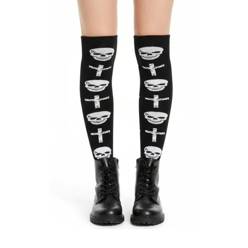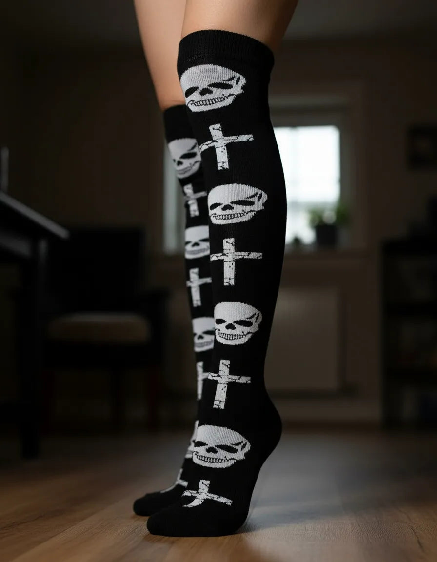Haz que tu disfraz brille (¡o asuste!) con nuestras Calcetas Largas Halloween, ideales para mujer. Disponibles en este diseño de cráneos terroríficamente divertido, estas medietas son el complemento perfecto para disfraces de bruja, esqueleto, vampira y mucho más.