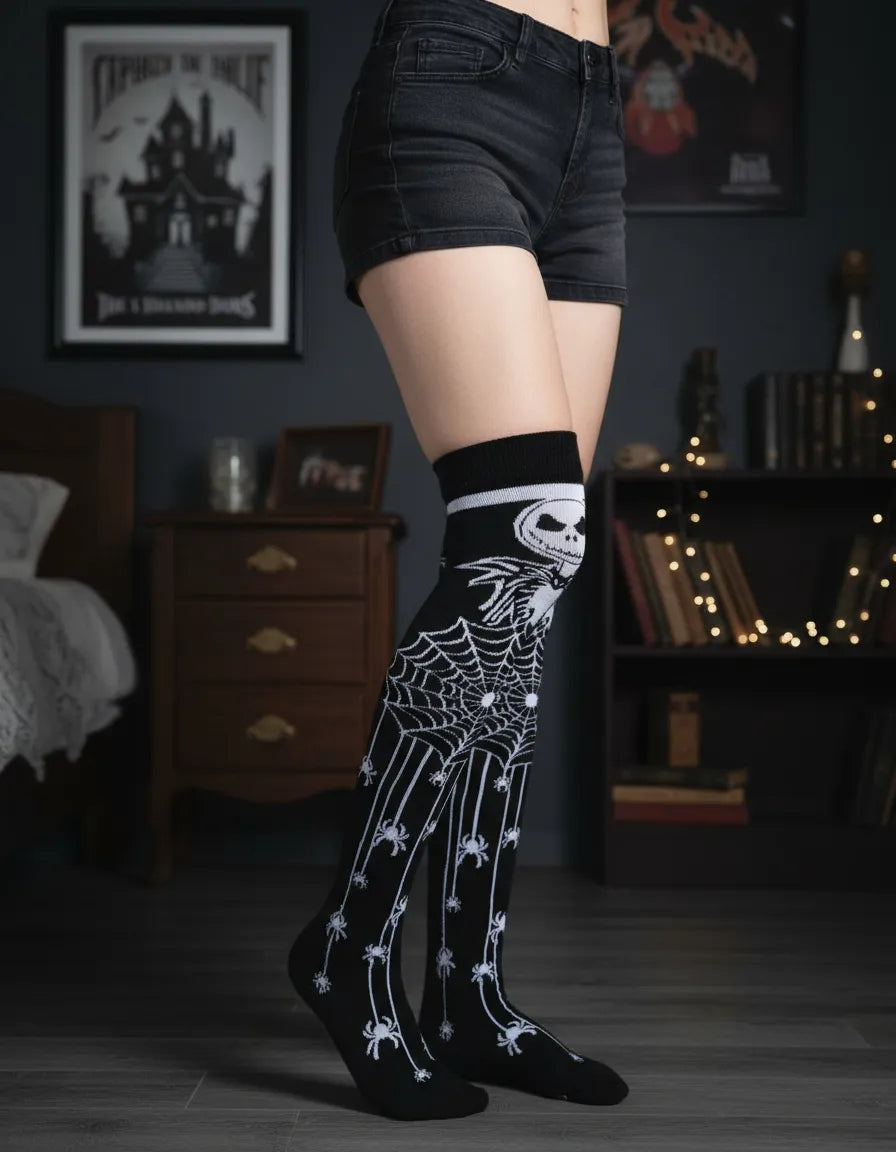 Haz que tu disfraz brille (¡o asuste!) con nuestras Calcetas Largas Halloween, ideales para mujer. Disponibles en este terroríficamente divertido diseño de Jack, estas medietas son el complemento perfecto para tu disfraz.