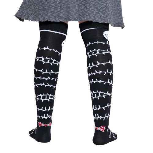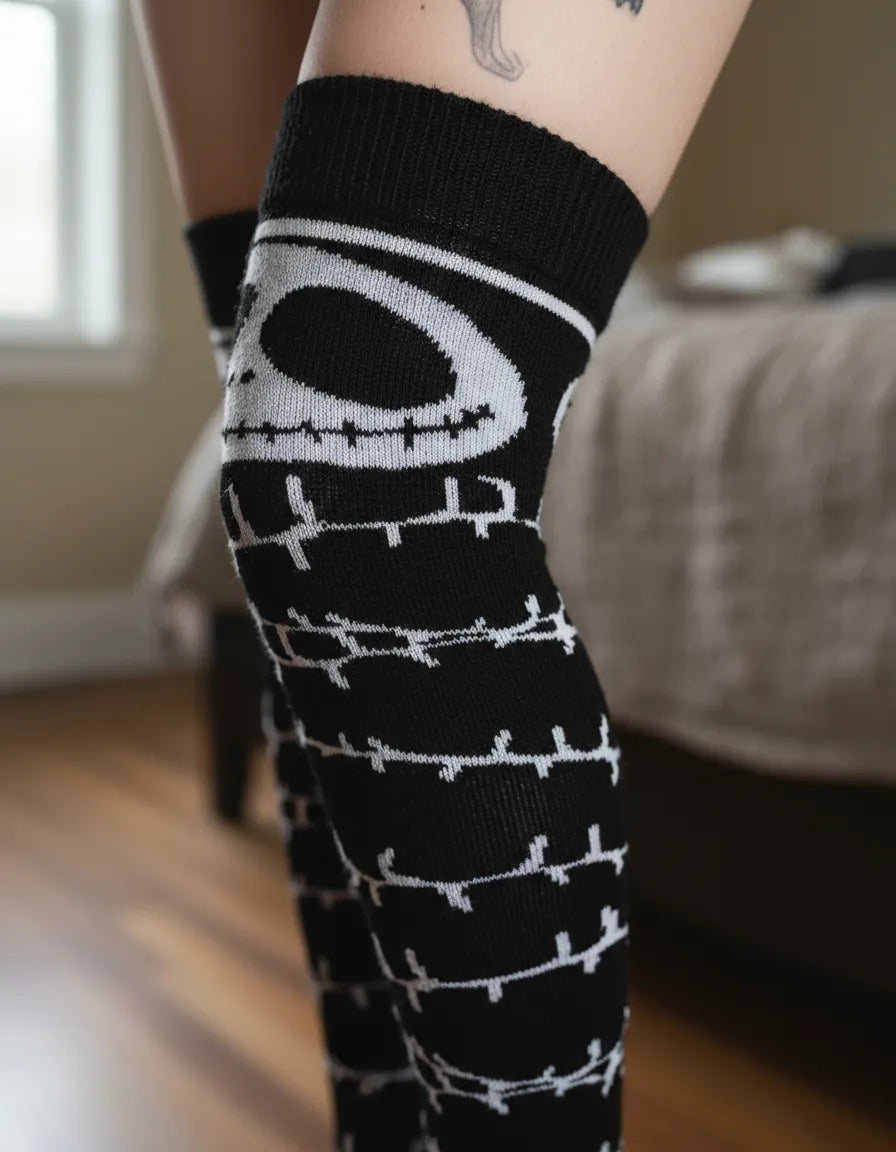 Confeccionadas en acrilán, se ajustan cómodamente hasta medio muslo, adaptándose a diferentes tipos de piernas sin apretar ni causar molestias. Además, su diseño en efecto 3D resalta increíblemente una vez puestas, dándole un toque único a cualquier look de Halloween.