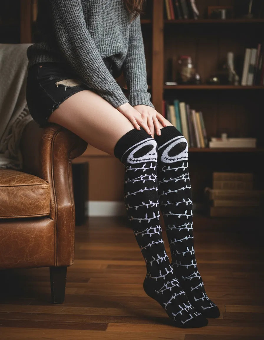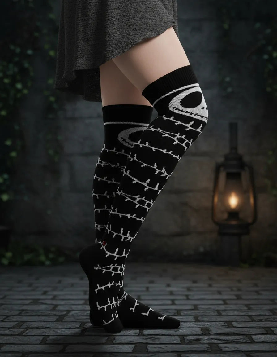 Haz que tu disfraz brille (¡o asuste!) con nuestras Calcetas Largas Halloween, ideales para mujer. Disponibles en este terroríficamente divertido diseño de Jack, estas medietas son el complemento perfecto para tu disfraz.