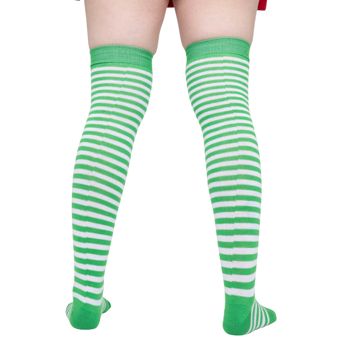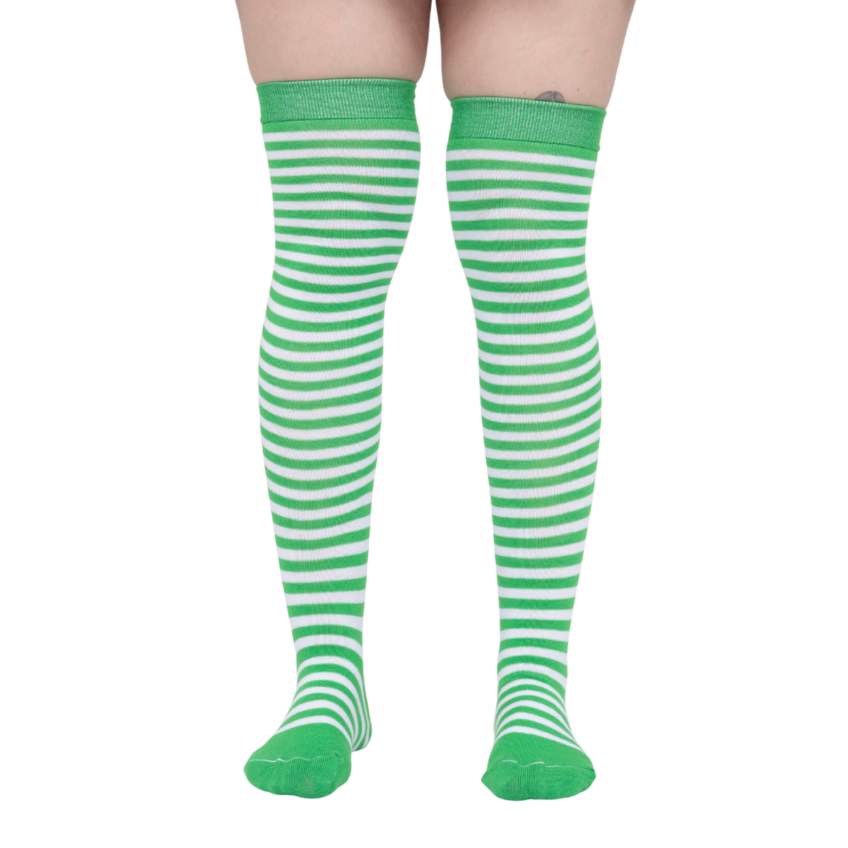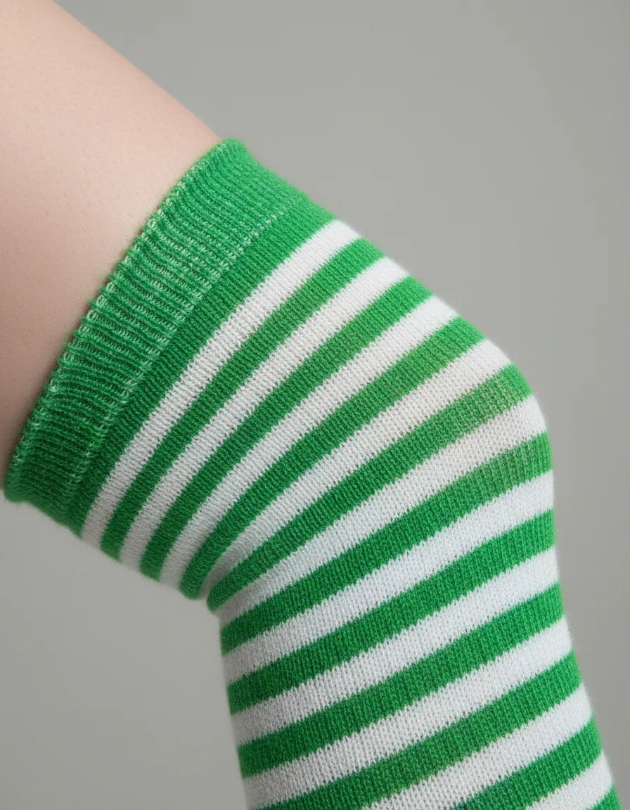 Calceta Larga Medieta Rayada Verde Y Blanco