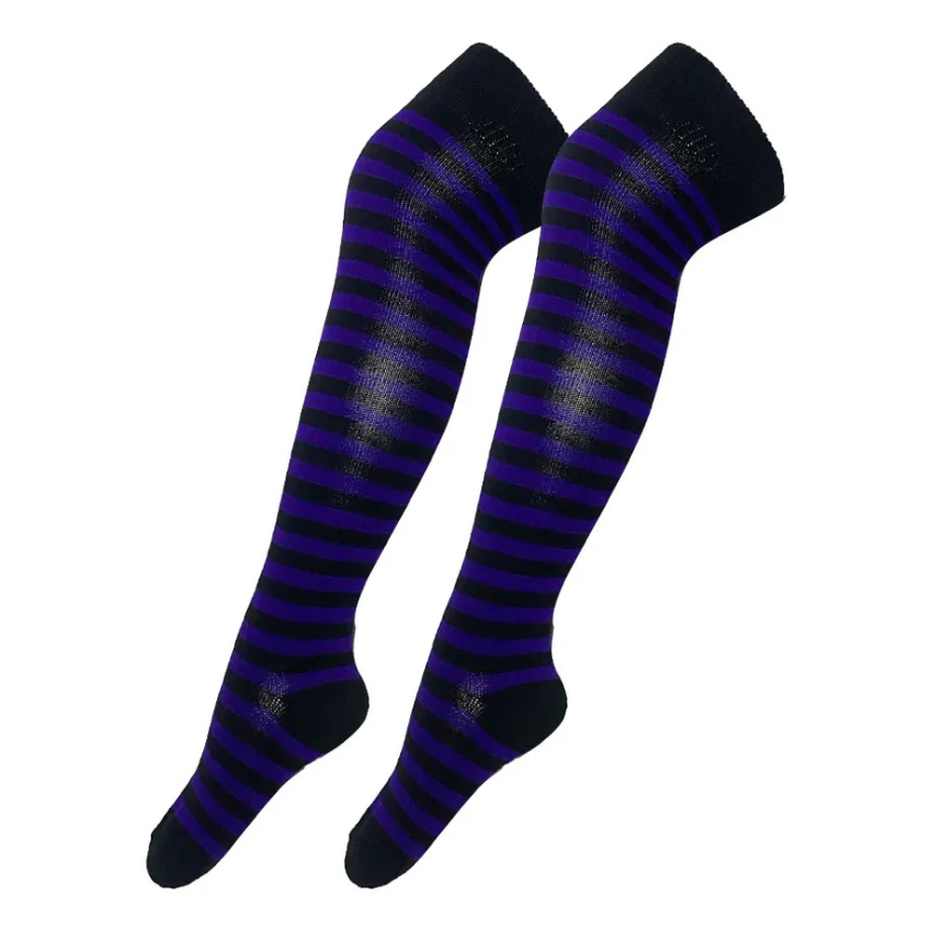 Nuestras Medietas Rayadas para Niña son el complemento perfecto para disfraces de Halloween, Día de Muertos o incluso para un look casual lleno de personalidad.