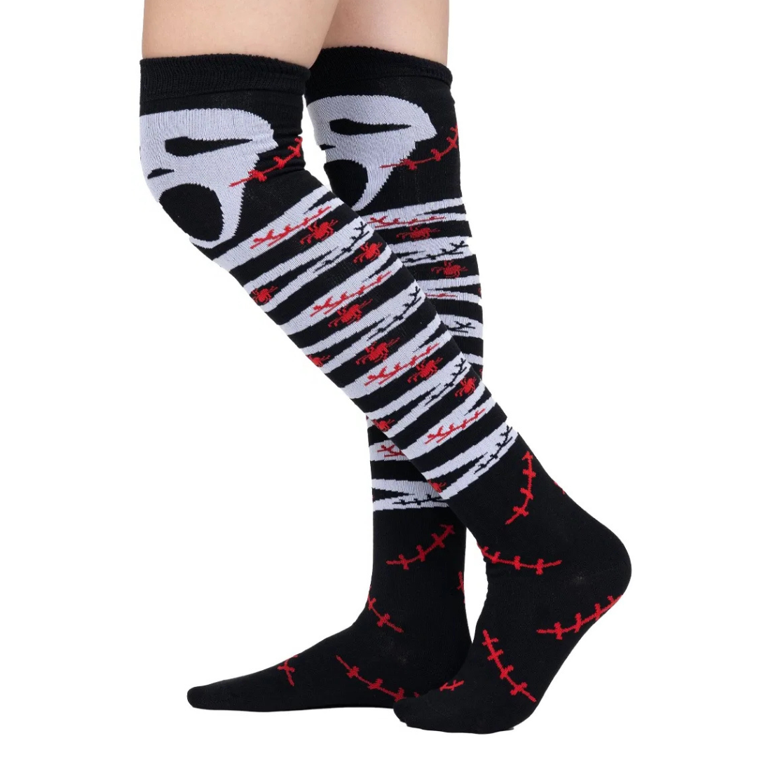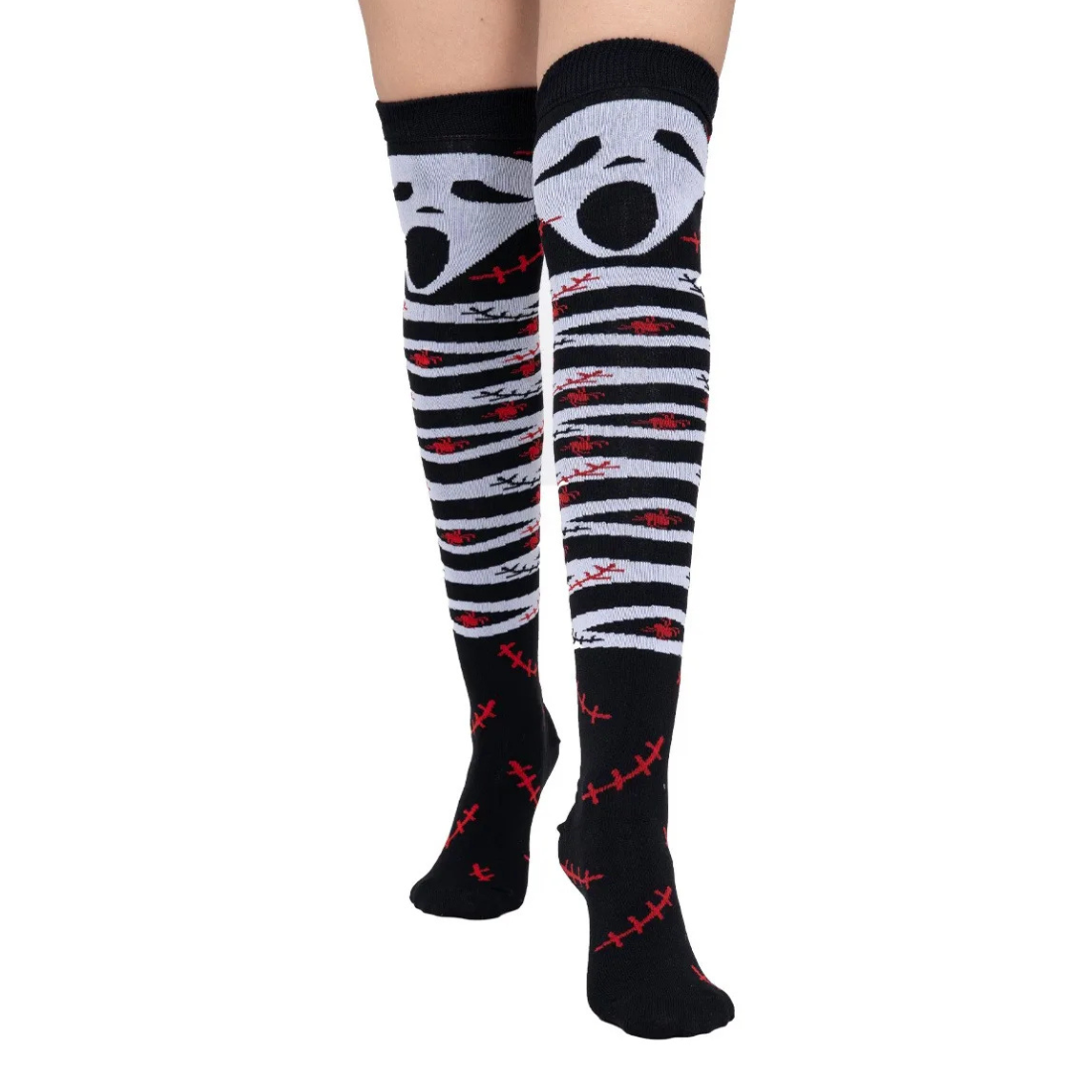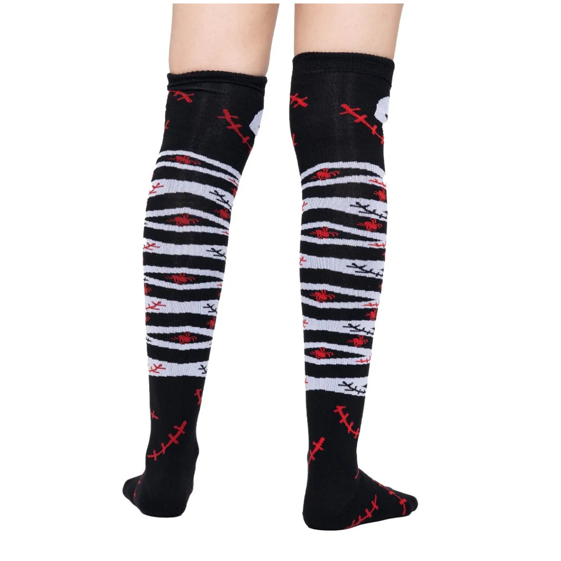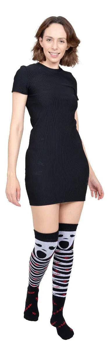 Confeccionadas en acrilán, se ajustan cómodamente hasta medio muslo, adaptándose a diferentes tipos de piernas sin apretar ni causar molestias. Además, su diseño en efecto 3D resalta increíblemente una vez puestas, dándole un toque único a cualquier look de Halloween.