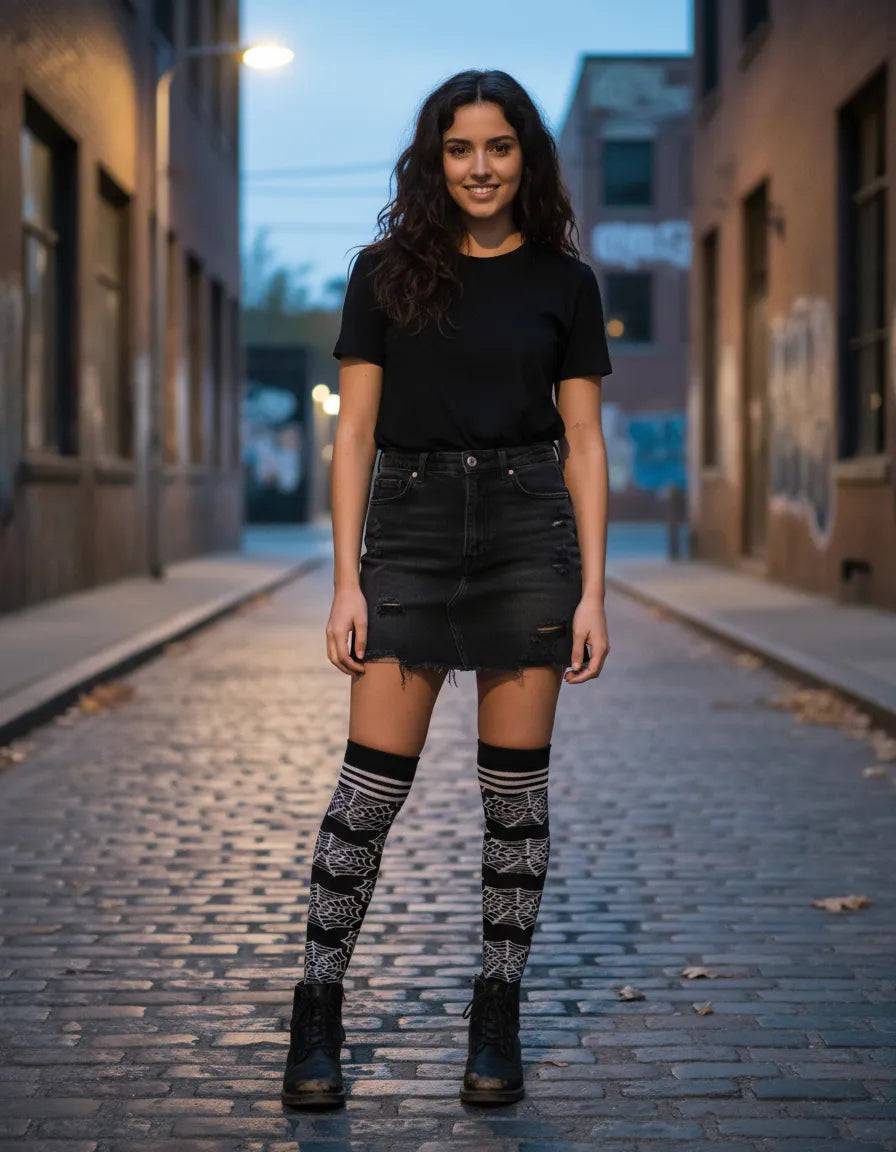 🎃🖤 ¡El accesorio perfecto para un Halloween con mucho estilo! 🧦🦇