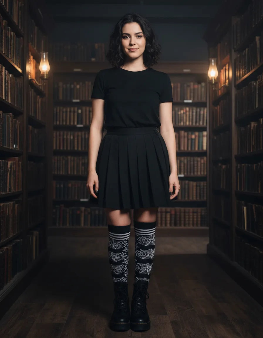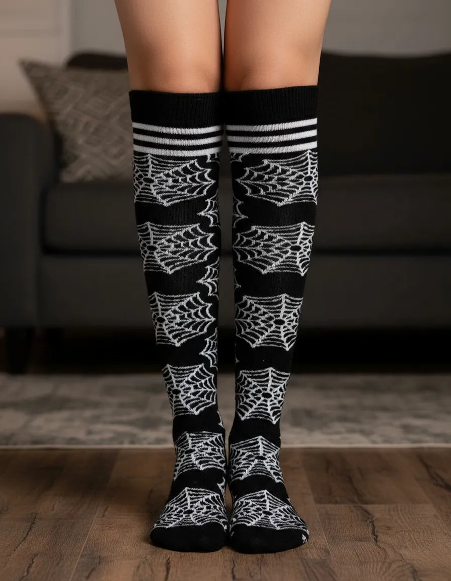 Confeccionadas en acrilán, se ajustan cómodamente hasta medio muslo, adaptándose a diferentes tipos de piernas sin apretar ni causar molestias. Además, su diseño en efecto 3D resalta increíblemente una vez puestas, dándole un toque único a cualquier look de Halloween.
