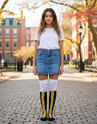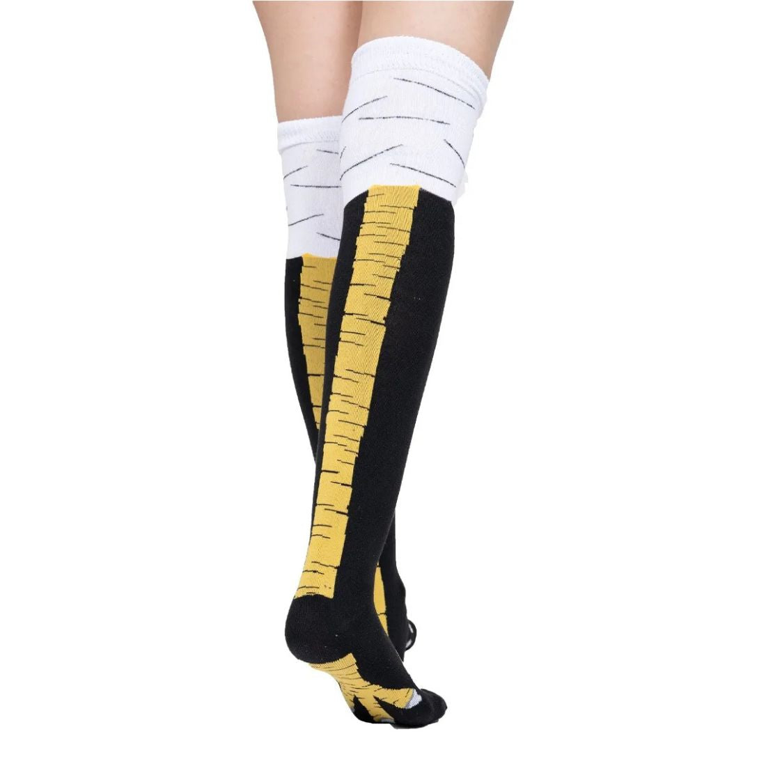 Su diseño largo hasta medio muslo (68 cm de pierna + 22 cm de pie) y patrón de rayas en efecto 3D hacen que tus piernas se vean estilizadas y llamativas. ¡Perfectas para looks modernos, escolares, cosplay o fiestas temáticas!