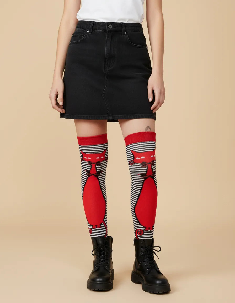 Calceta Larga Medieta Gato Rojo