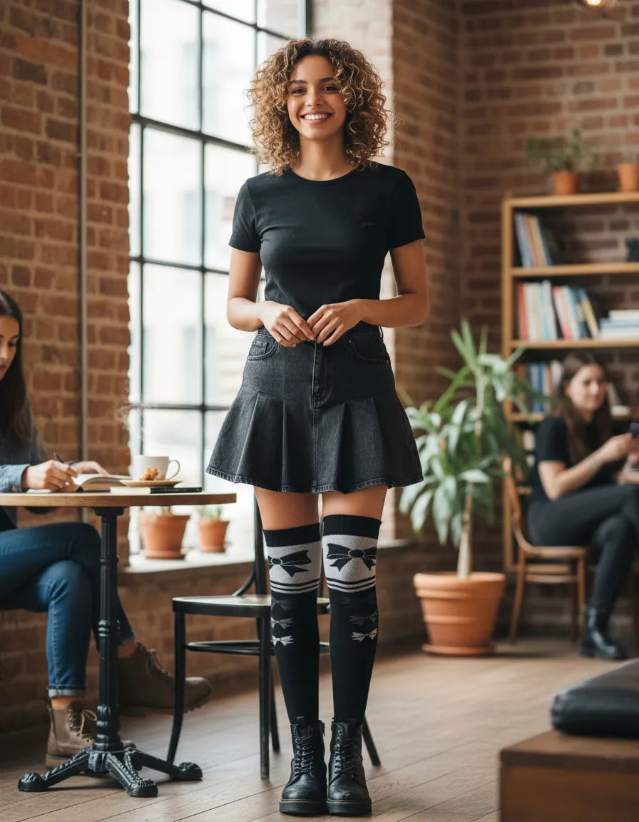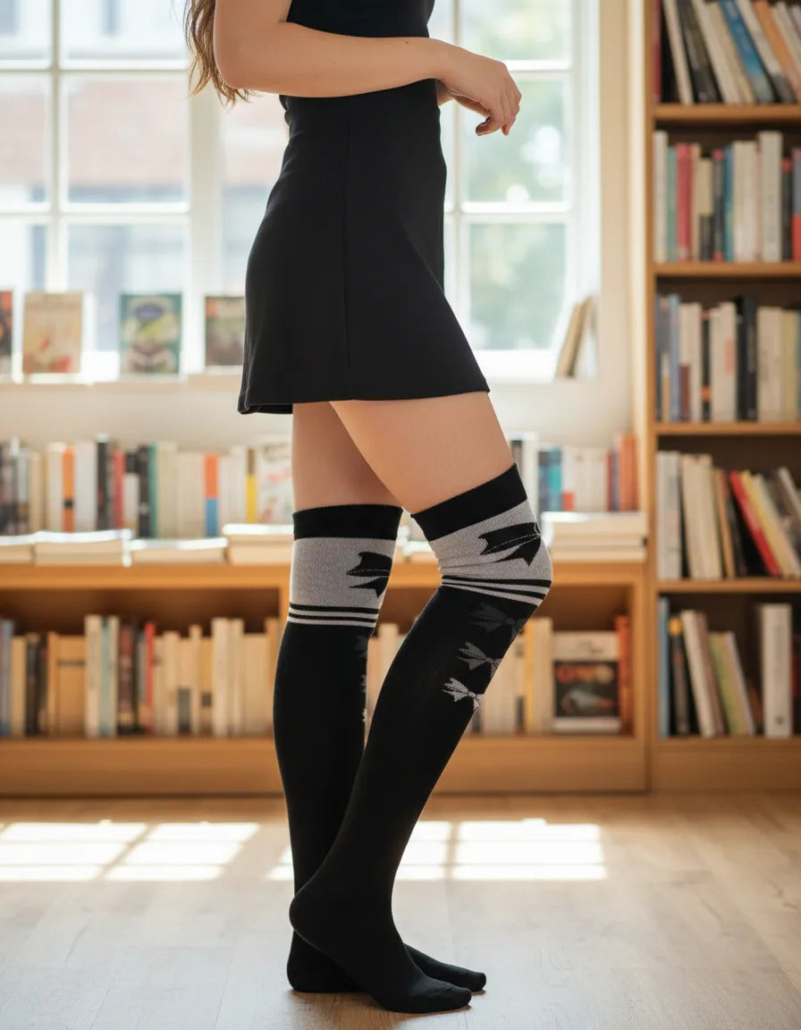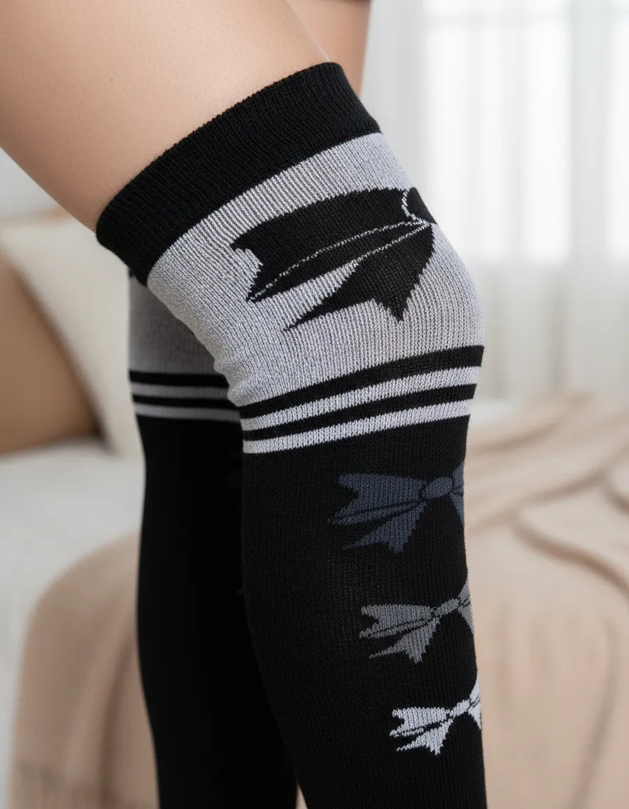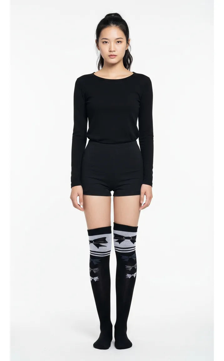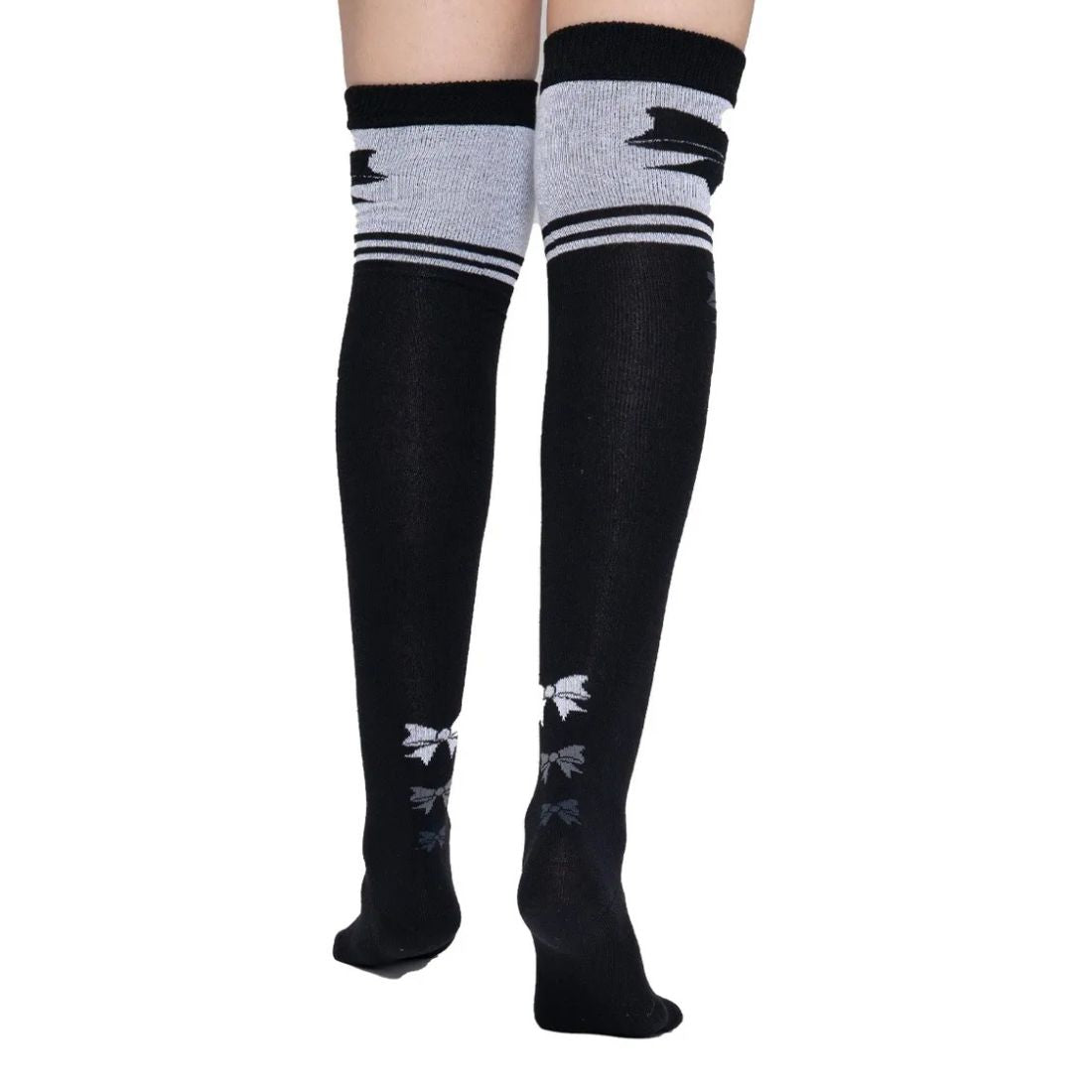 Haz que tu disfraz brille (¡o asuste!) con nuestras Calcetas Largas Halloween, ideales para mujer. Disponibles en este divertido diseño de moño, estas medietas son el complemento perfecto para tu disfraz.