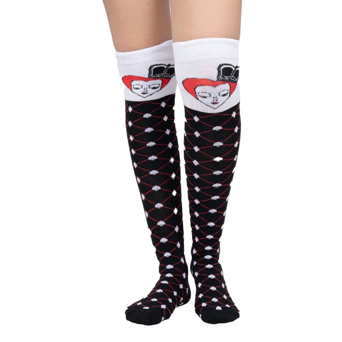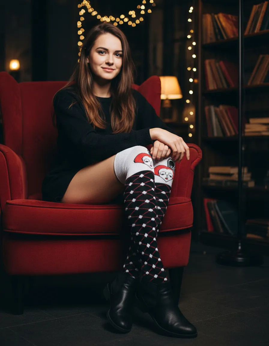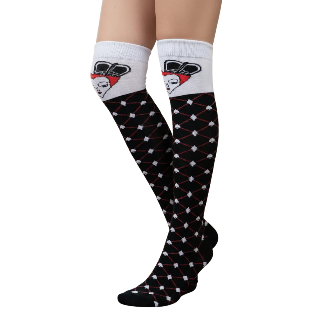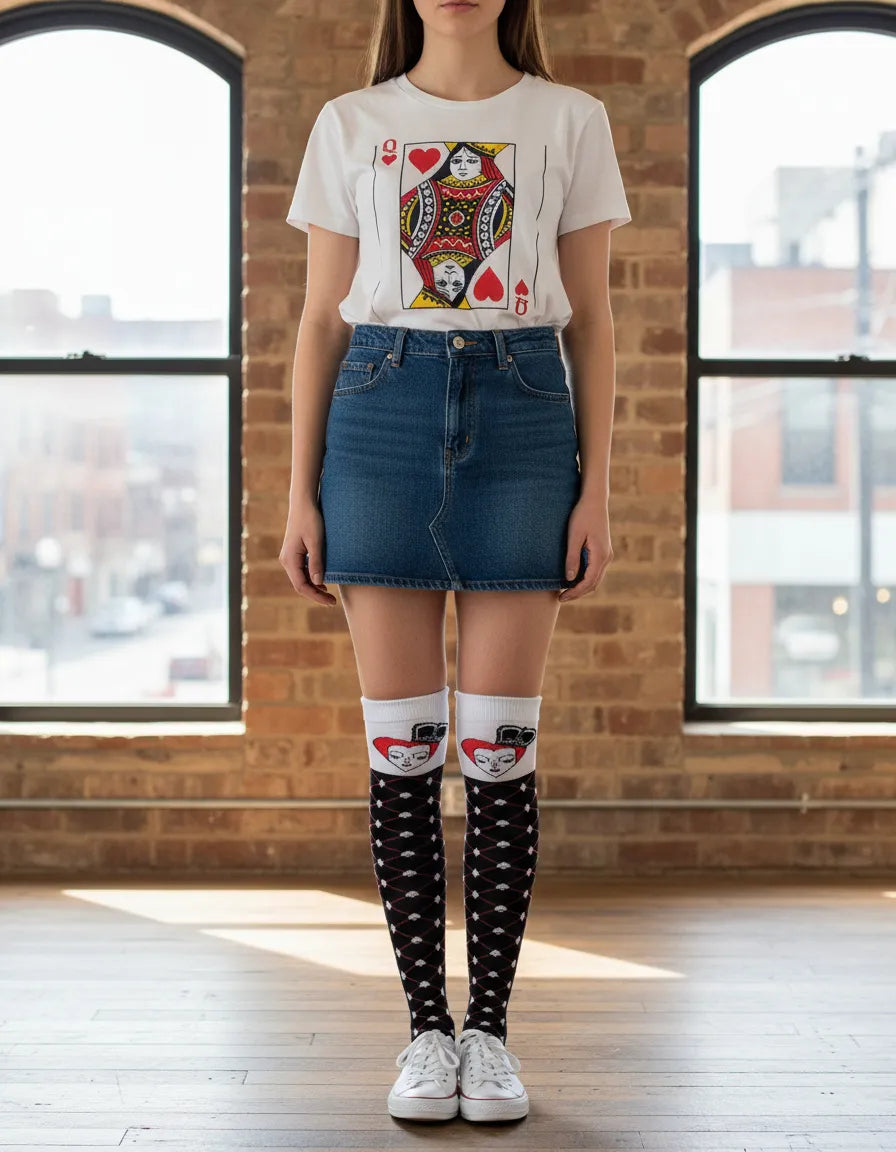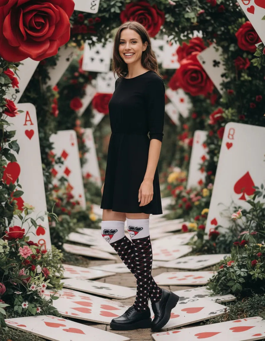 Haz que tu disfraz brille (¡o asuste!) con nuestras Calcetas Largas Halloween, ideales para mujer. Disponibles en este diseño de poker súper divertido, estas medietas son el complemento perfecto para disfraces de reina roja, bruja, esqueleto, vampira y mucho más.
