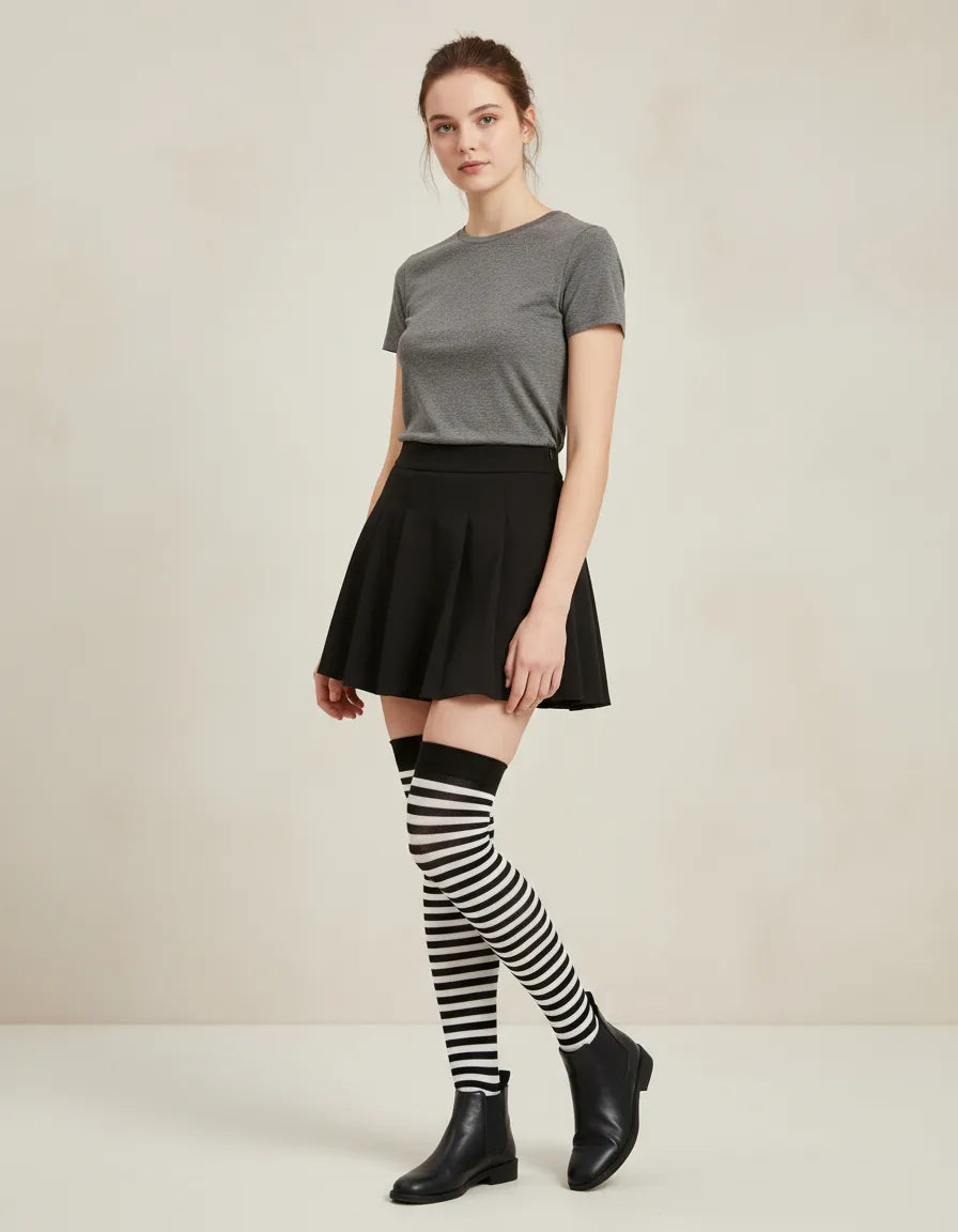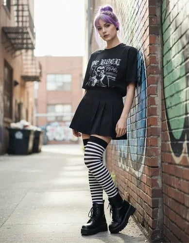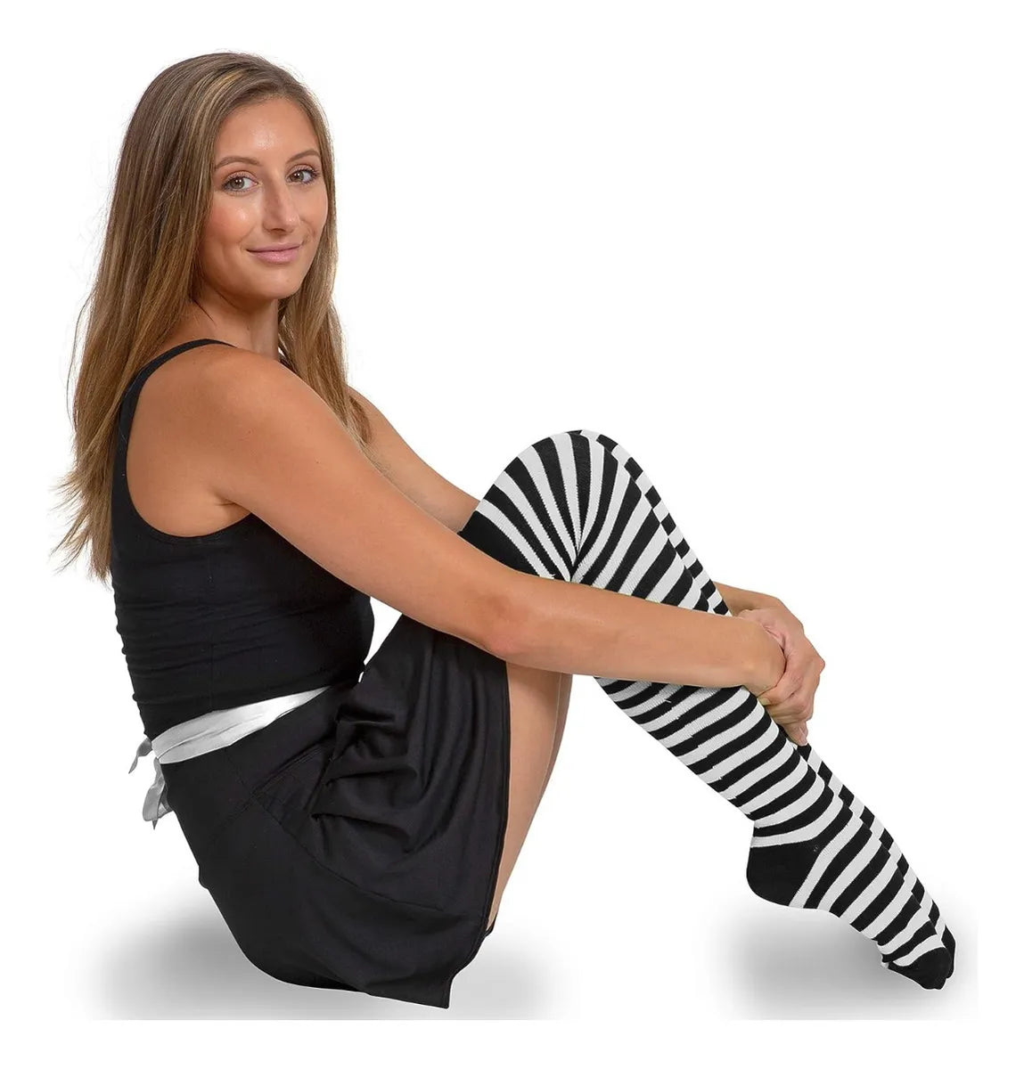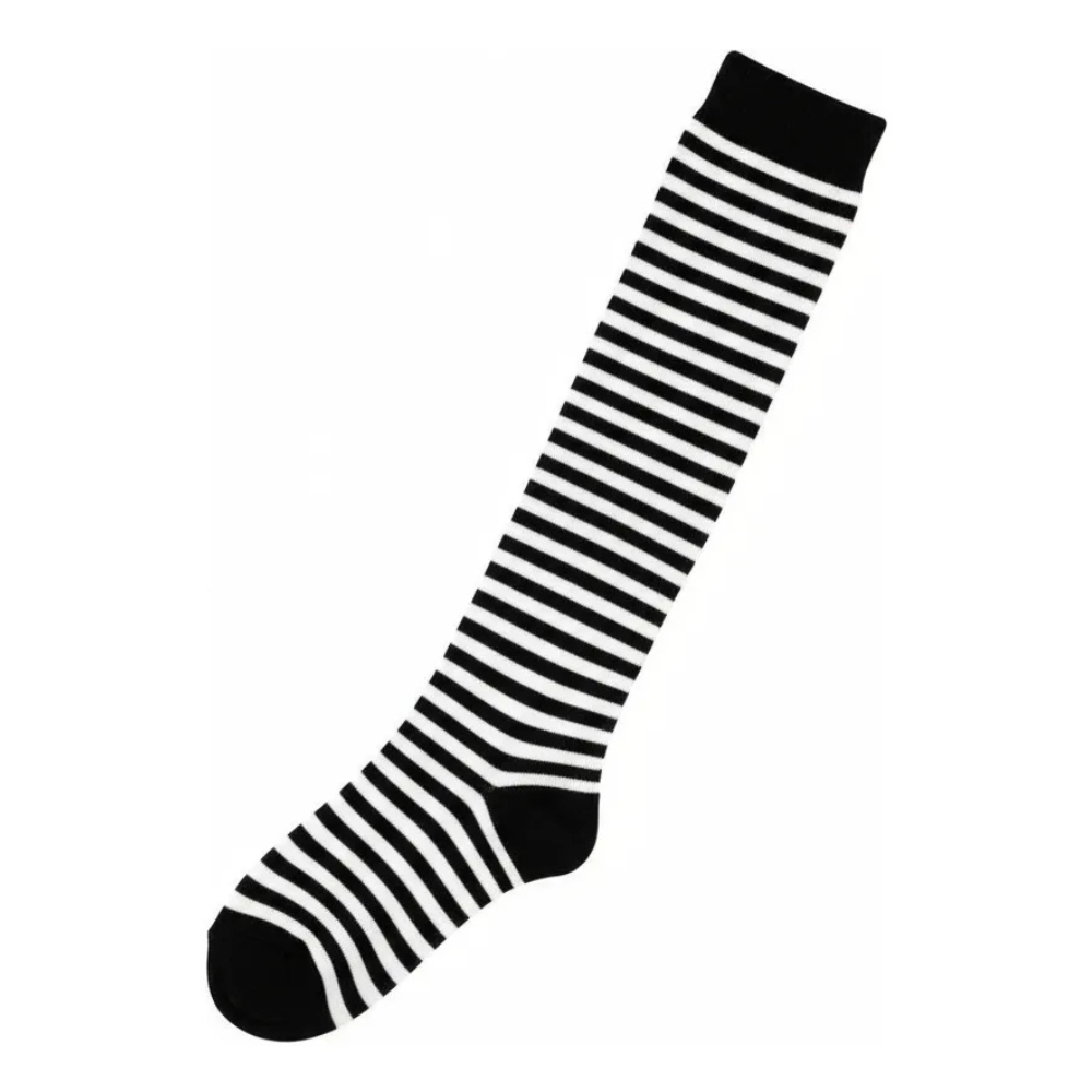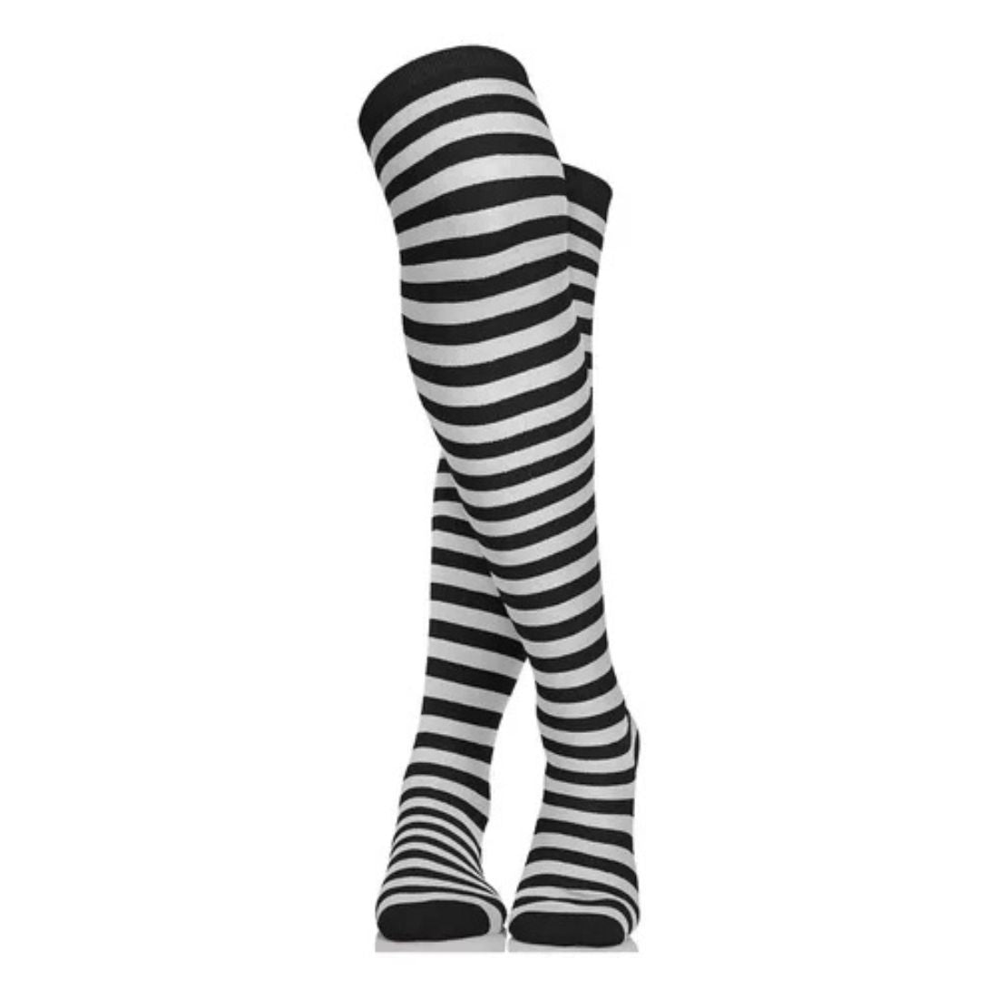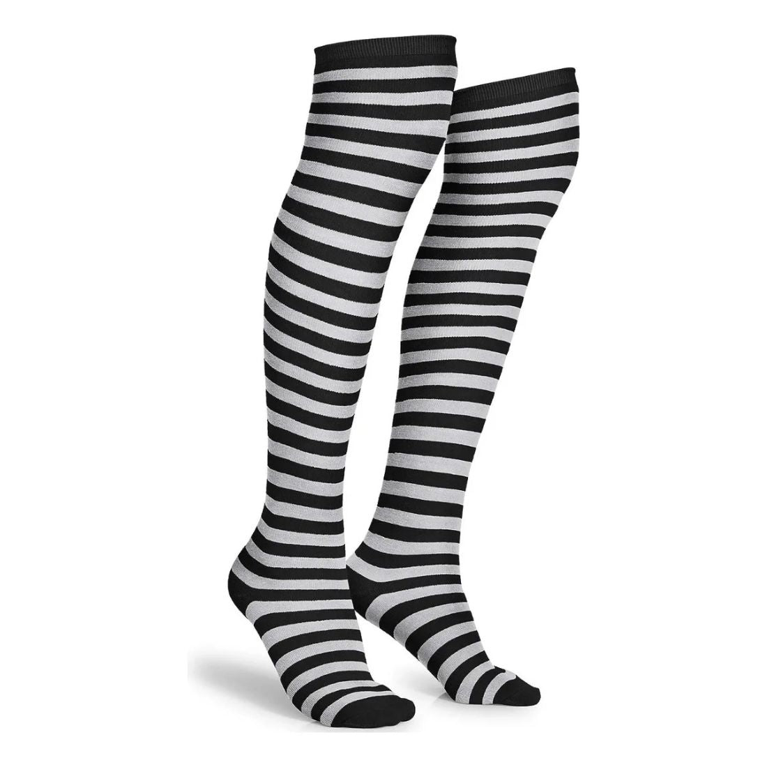 Confeccionadas en acrilán, se ajustan cómodamente hasta medio muslo, adaptándose a diferentes tipos de piernas sin apretar ni causar molestias. Además, su diseño con rayas resalta increíblemente una vez puestas, dándole un toque único a cualquier look de Halloween.