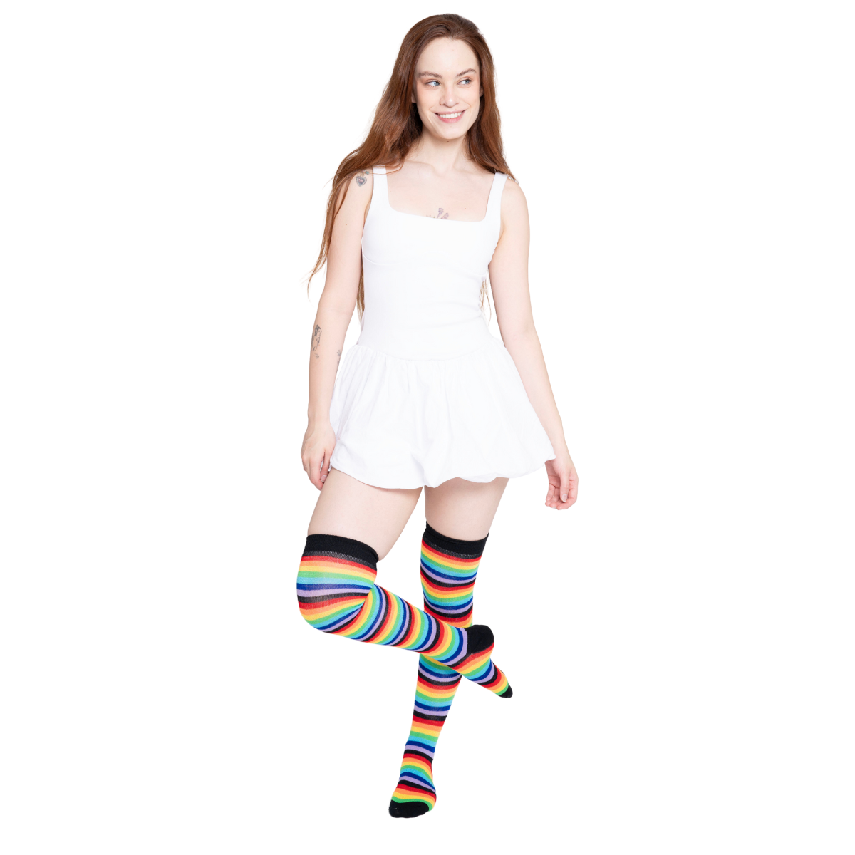 Confeccionadas en acrilán, se ajustan cómodamente hasta medio muslo, adaptándose a diferentes tipos de piernas sin apretar ni causar molestias. Además, su diseño con rayas resalta increíblemente una vez puestas, dándole un toque único a cualquier look de Halloween.