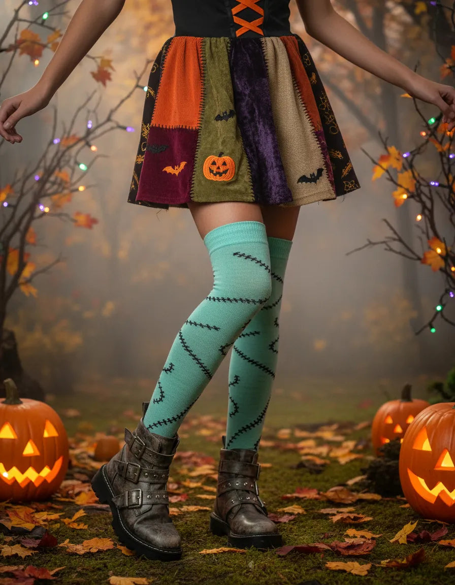 Confeccionadas en acrilán, se ajustan cómodamente hasta medio muslo, adaptándose a diferentes tipos de piernas sin apretar ni causar molestias. Además, su diseño en efecto 3D resalta increíblemente una vez puestas, dándole un toque único a cualquier look de Halloween.