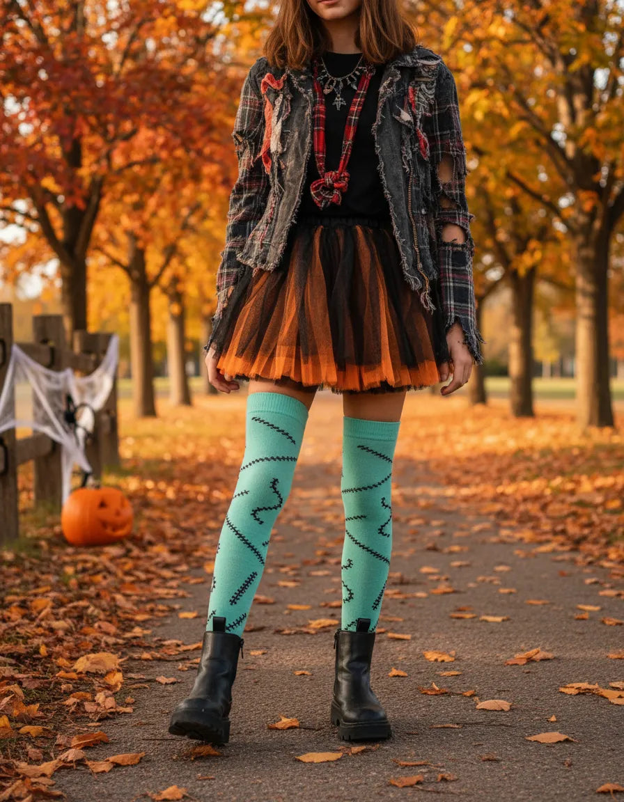 🎃🖤 ¡El accesorio perfecto para un Halloween con mucho estilo! 🧦🦇